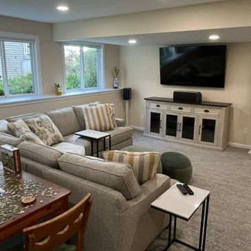 This lower-level renovation of an unfinished basement about doubled the size of the home. This 1,400 SF renovation added an exercise room, 2 bedrooms, a full bath, a storage room, and a large family room to the house for around $74,000 (2024 construction dollars). It was quite an impressive use of resources. The renovation project was completed in about 10 weeks.
